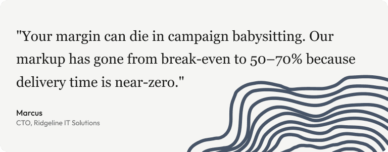 With my previous platform, every new client meant more admin work. More campaigns to build. More learners to chase. More reports to pull. Growth meant more hours, not more profit. With Kinds, adding a client takes 10 minutes. Connect M365, users sync, training starts. Nothing to manage.